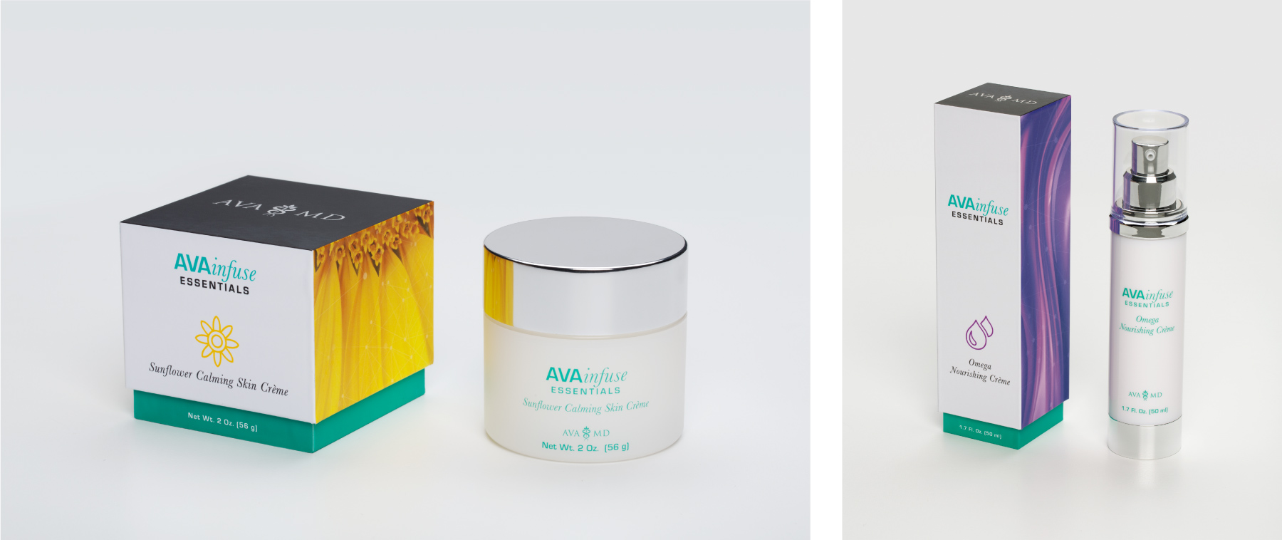 Well-respected dermatologist Dr. Ava Shamban reached out to Visual Asylum to ideate packaging for her new luxury product line. Bringinging science and nature together to target common aging and skincare concerns with the highest-quality ingredients, the AVAinfuse line contains seven products, each formulated to address a specific skin concern. Expanding further on the AVA MD brand, this project leaned heavily on photography and iconography to tell it’s story. Under art direction from Amy Levine we designed all aspects: design, sourcing bottles, prototyping, and packaging production.